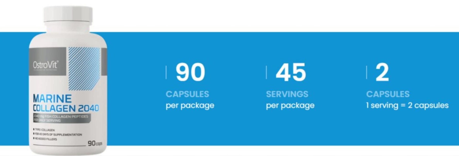 OstroVit Merekollageen ehk Marine Collagen 1020 mg on kalakollageeni peptiide sisaldav toidulisand kapslites. Toode on loodud kõikidele inimestele, kes hoolivad ilusast ja tervest naha väljanägemisest, samuti sporti tegevatele inimestele, pärast spordivigastusi või intensiivset füüsilist pingutust, luumurdude järgsel taastumisperioodil ja kahjustatud liigeste taastamiseks.