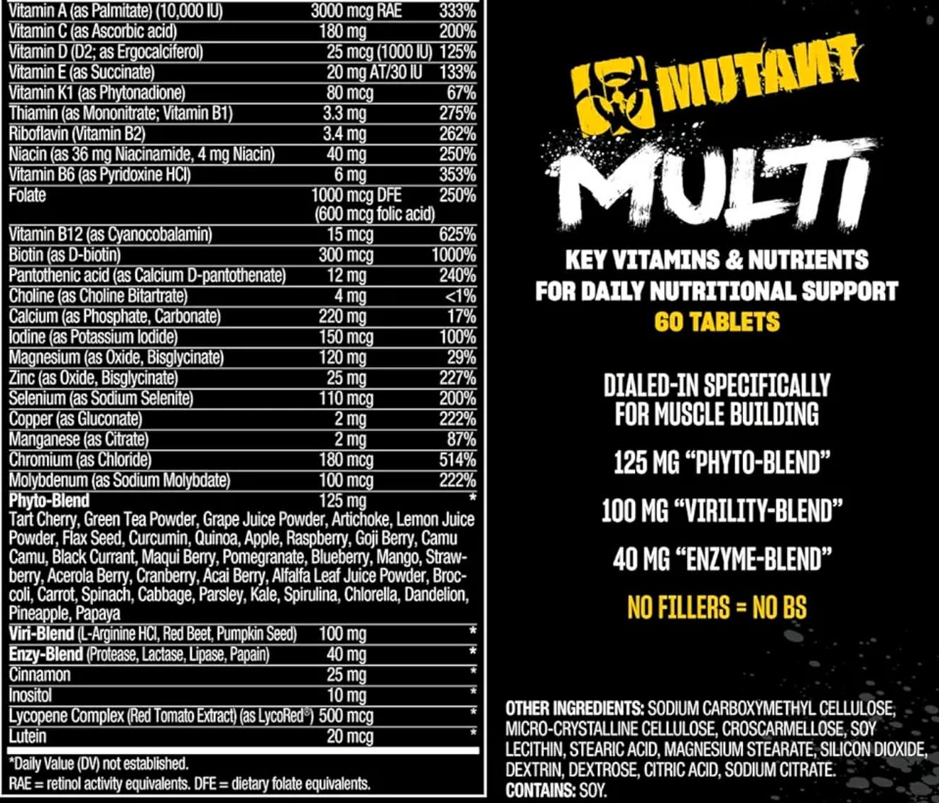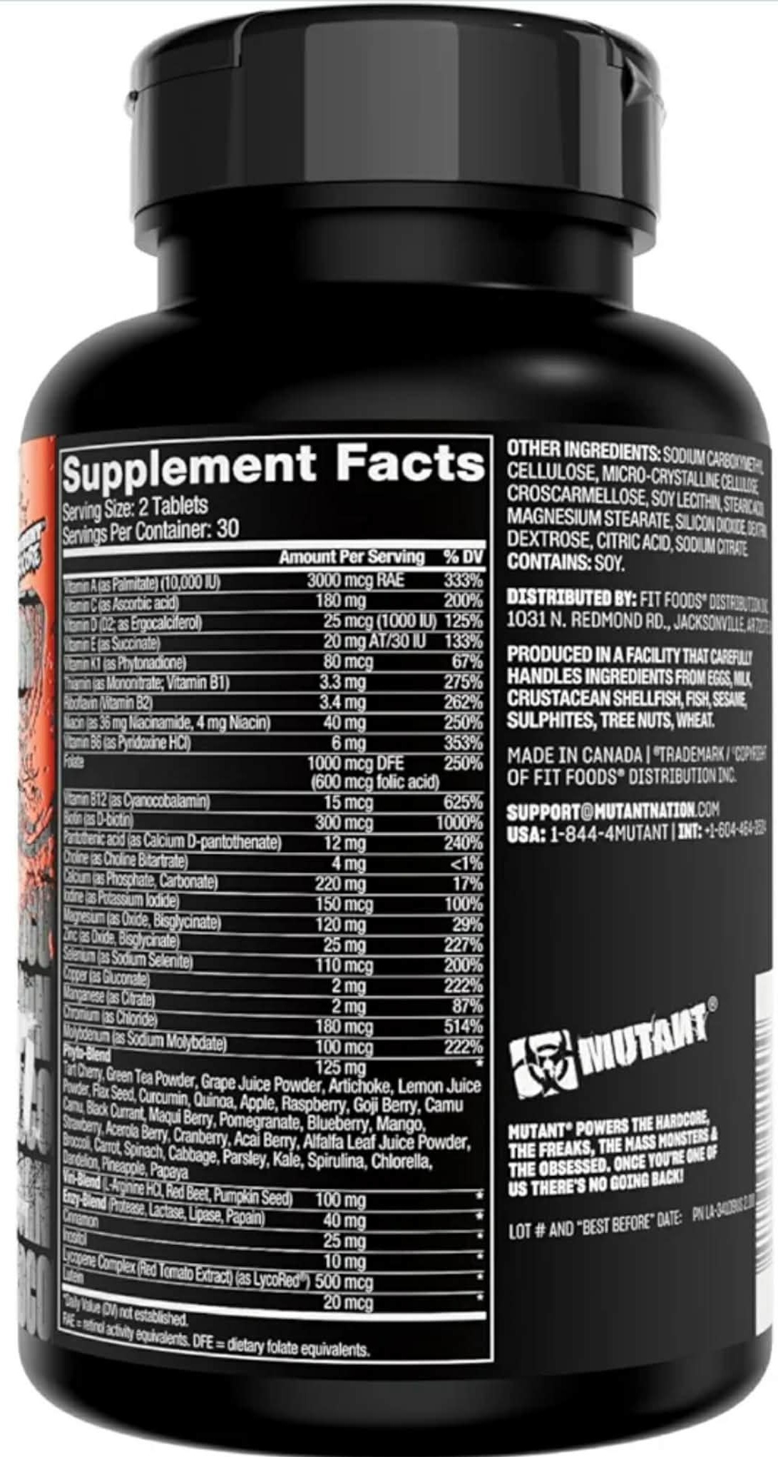 Mutant Multi on terviklik toidulisandivalem, mis ühendab üle 80 koostisosa mitmeks süsteemiks ja on spetsiaalselt loodud raskete raskuste tõstmise karmideks reaalsusteks. Tugevatoimelised vitamiinid, mineraalid, sh elektrolüüdid, fütotoitained, botaanilised ekstraktid, antioksüdandid, ensüümid, marjad ja rohelised, lipotroopsed faktorid; kõik kergesti neelatavate tablettidena. Alusta iga päeva maitsva eine ja oma Mutant Multiga!